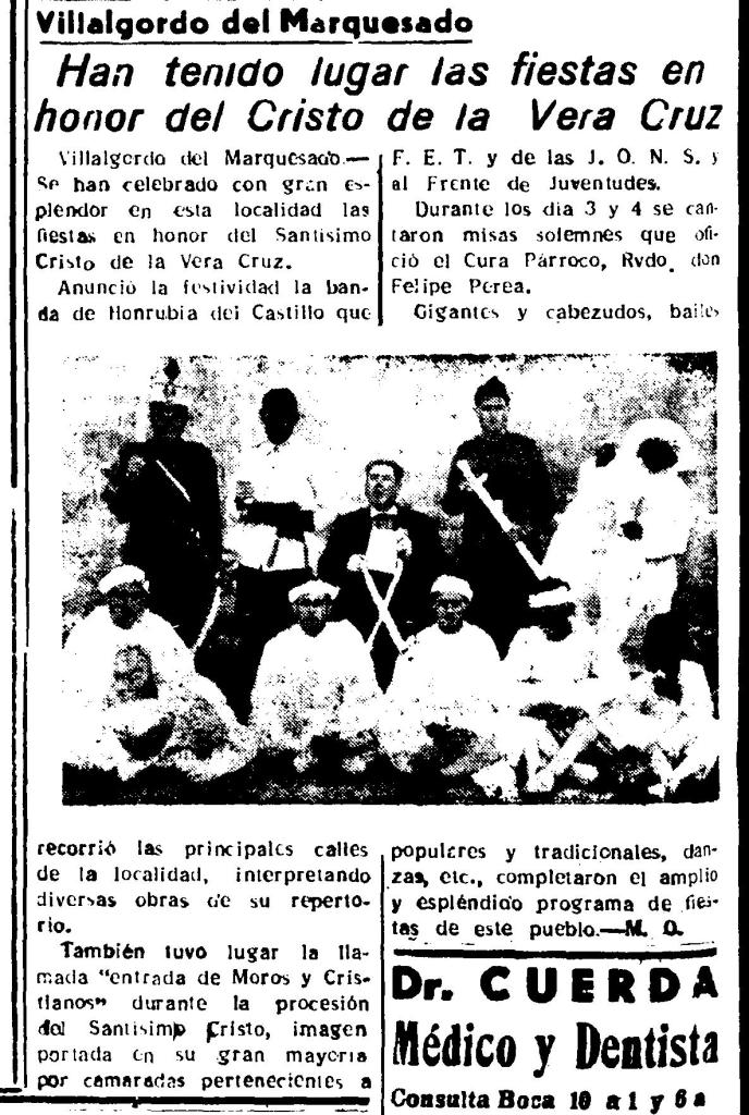 Otro ejemplo lo encontramos en el periódico La Ofensiva de 16 de mayo de 1954, en el que se constata la celebración de la fiesta de Moros y Cristianos