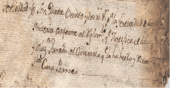 Se observan otros apuntes posteriores: “Festividad de Santa Quiteria: Son data 22 reales pagados a Don Nicolás Vicente Moreno, cura párroco de esta villa por sus derechos de la misa cantada y procesión de Santa Quiteria.” (Año de 1.830) y “Donaciones de Iglesia: lo son 22 reales para dar al señor cura de esta parroquia para la procesión y misa cantada que celebra en fiesta de Santa Quiteria.” (Año de 1831)