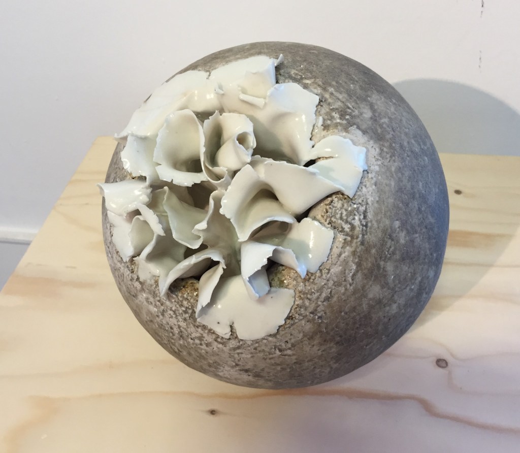 Una circunferencia de cerámica despliega un cuerpo orgánico sobre uno de sus extremos. Nos habla del trabajo manual, del tiempo invertido para darle forma, dotarlo de identidad y de vida.