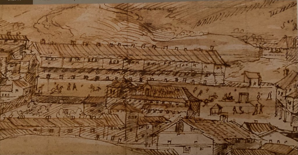 Existen testimonios gráficos de la forma de este espacio y de su importancia entre ellos los de Van den Wyngaerde (1565) y Llanes y Massa (1773)