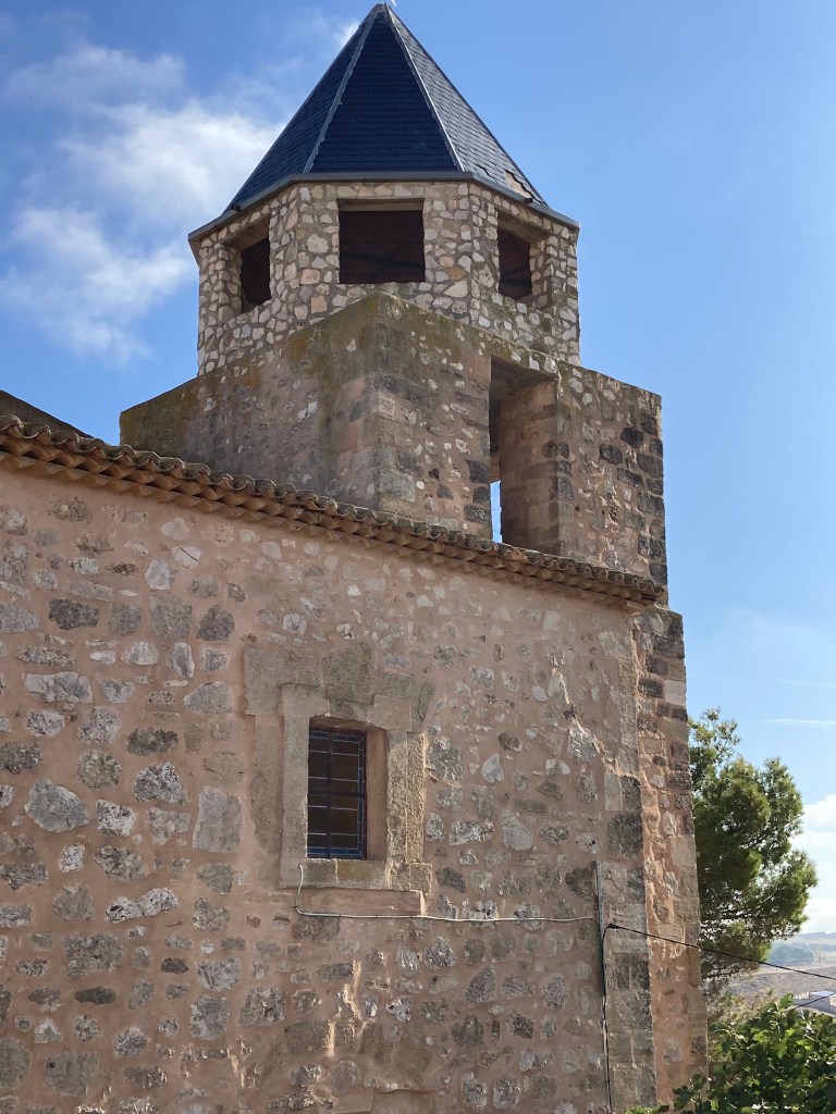 Construcción sólida y de buenas proporciones, torre en el ángulo Sureste, algo saliente del muro, alto zócalo, dos cuerpos irregulares y el superior de reciente construcción. Tanto la torre como el arco que se abre a su lado parecen ser los restos de otra construcción más antigua. La portada es un arco de medio punto enmarcado por pilastras coronadas por un frontón. Los vanos son abocinados.