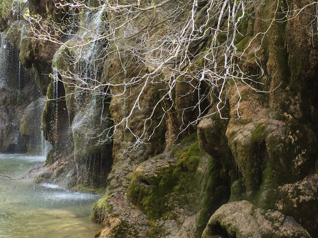 El agua circula encauzada en los materiales arenosos del Cretácico inferior para precipitarse por unas cascadas formadas por depósitos de tobas y travertinos.