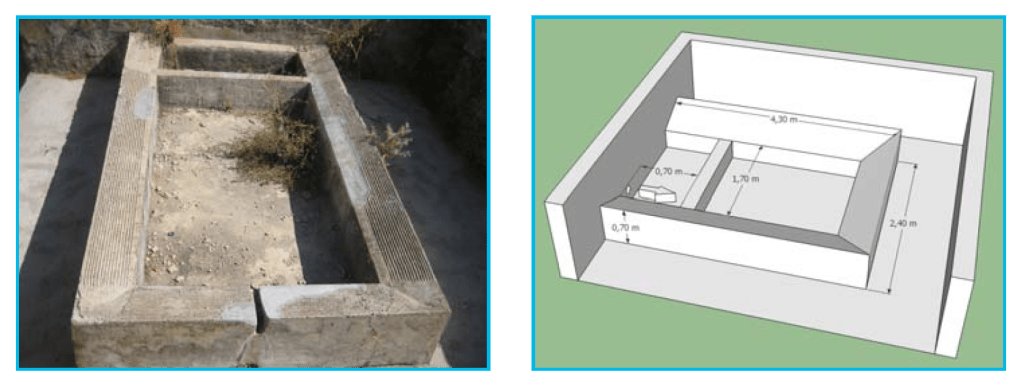 y fue edificado con ladrillo y cemento. Presenta una puerta de entrada en un frontal del
